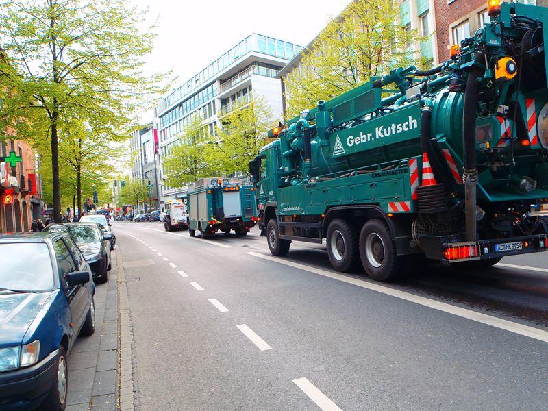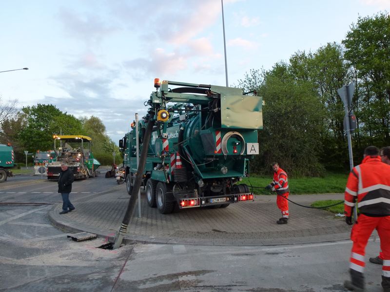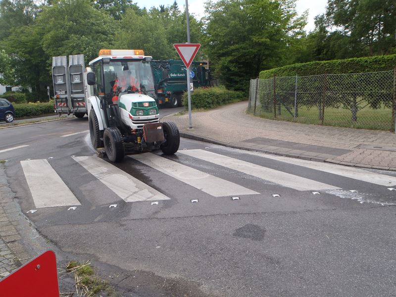 Straßenreinigung mach Verkehrsunfall mit Ölverlust
