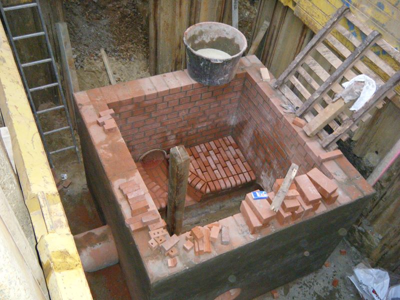 Klein aber fein: hier entstand ein gemauertes Kanalschachtbauwerk; Fließrinne und Schachtsohle sind präzise aus Klinkermauerwerk gefertigt.